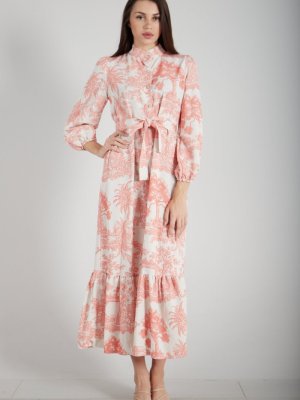 Ardanewline Oranj Desenli Astarsız Elbise