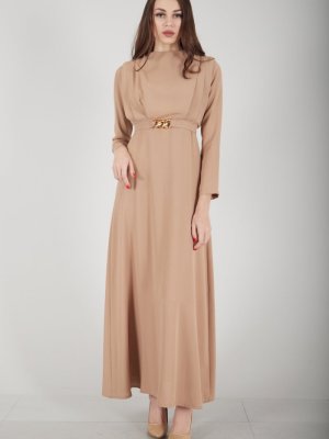 Ardanewline Sütlü Kahve Üzeri Pilise Detaylı Elbise