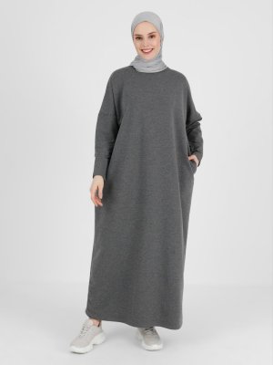 Refka Antrasit Gizli Cep Detaylı Salaş Elbise