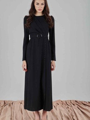 Ardanewline Siyah A Kesim Düğme Detaylı Elbise