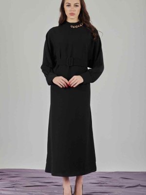 Ardanewline Siyah Yakası Zincir Detaylı Elbise