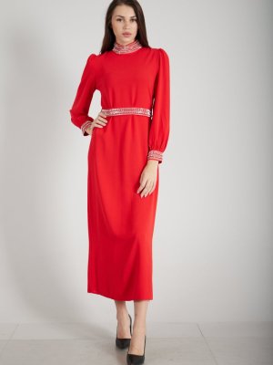 Ardanewline Kırmızı Boncuk Detaylı Elbise