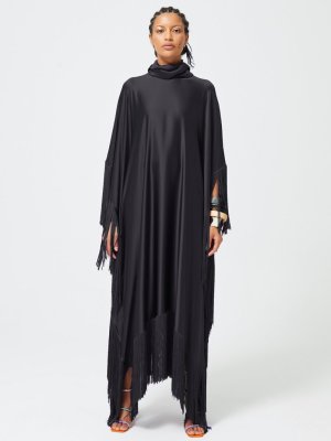 Nuum Design Saçaklı Siyah Saten Elbise