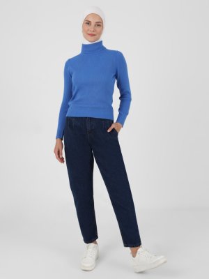 Benin Mavi Boğazlı Yaka Kazak