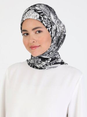 Miray Krep Eşarp Siyah Gri