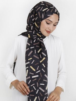 Renkli Butik Eşarp Desenli Pamuk Şal Siyah Vizon