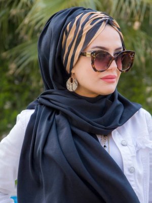 AİŞE TESETTÜR Siyah Zebra Büzgülü Hazır Şal