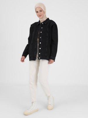 Benin Siyah Aller Detaylı Düğmeli Kot Ceket