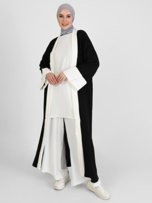 Refka Ekru Siyah Aerobin Rahat Kalıp Abaya Ferace