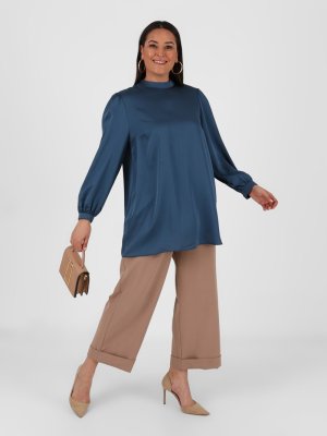 Alia Büyük Beden Kol Uçları Detaylı Tunik Gök