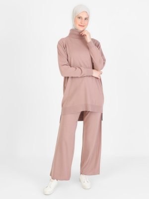Refka Derin Pembe Tunik & Pantolon İkili Triko Takım