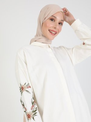 Refka Kolları Nakış Detaylı Tunik Hindistan Cevizi