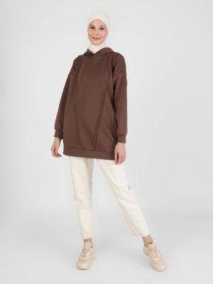 Refka Kahverengi Scuba Kapüşonlu Uzun Sweatshirt