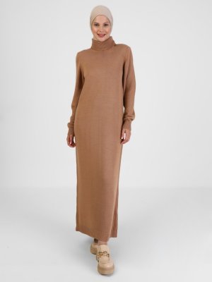 Refka Bisküvi Boğazlı Yaka Triko Elbise