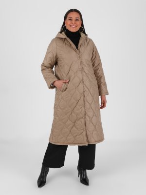 Alia Bej Büyük Beden Kapüşonlu Kapitone Kaban