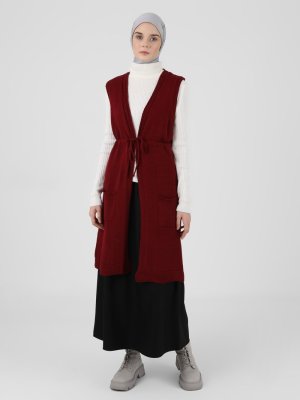 İLMEK TRİKO Bordo Cep Detaylı Triko Yelek Koyu