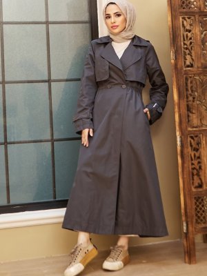 Neways Antrasit Düğme Detaylı Trençkot