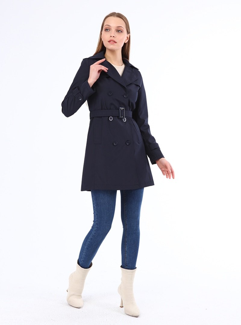 Jamila Lacivert Kemerli Trençkot