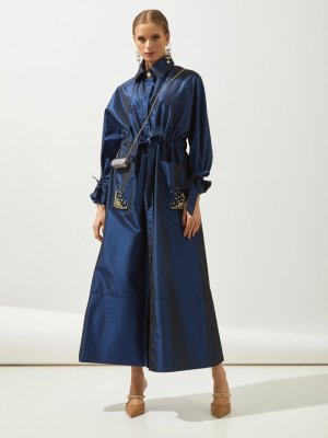 AL SHEIKHA Mavi Shine Trench Coat Handmade