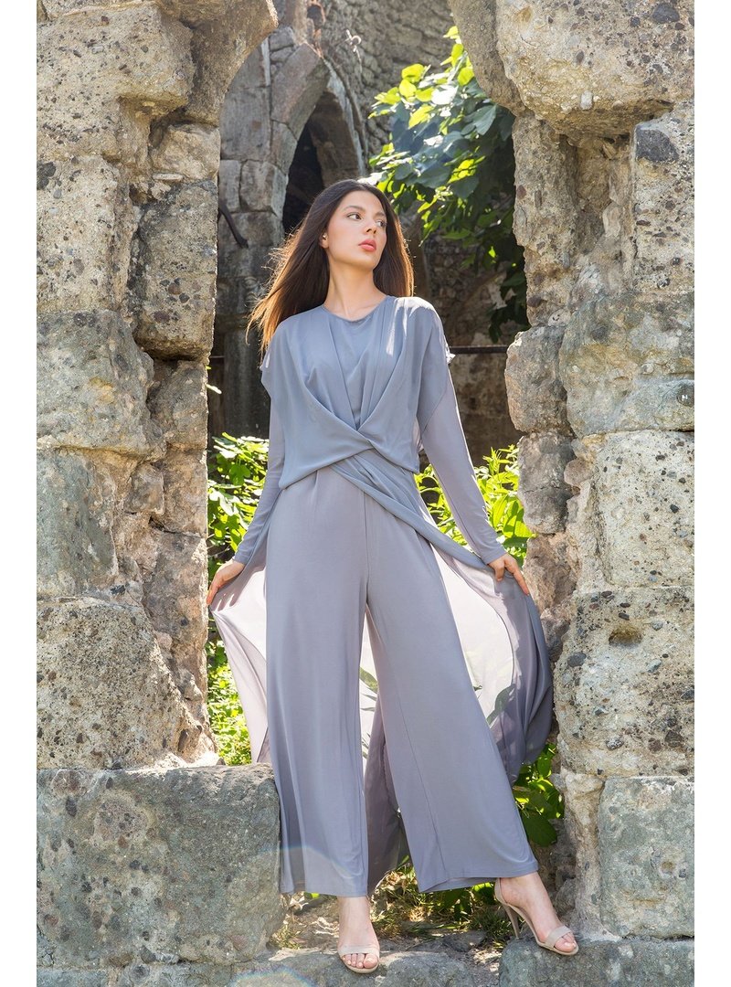 Melike Tatar Gri Şifon Detaylı Tulum