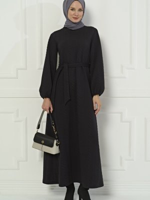 Beyza Siyah Örme Kapitoneli Kışlık Elbise