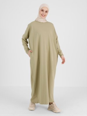Refka Soft Yeşil Gizli Cep Detaylı Salaş Elbise
