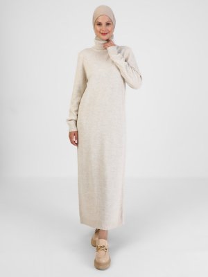 Refka Kum Melanj Boğazlı Yaka Triko Elbise