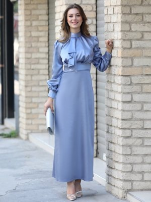SEMRA AYDIN Mavi Damla Abiye Elbise
