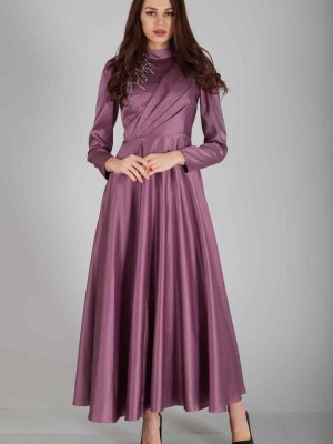 Ardanewline Lavanta İşlemeli Saten Abiye Elbise