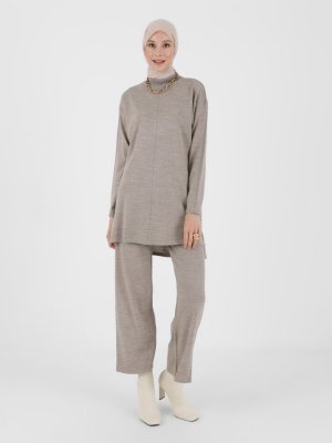 Refka Koyu Vizon Tunik & Pantolon İkili Triko Takım