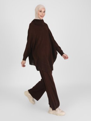 Refka Koyu Kahve Rahat Kesim Tunik & Pantolon İkili Triko Takım
