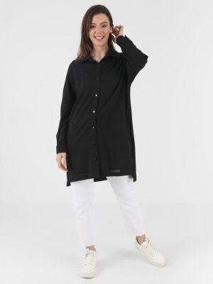 SOUL Siyah Yanları Yırtmaçlı Düğmeli Tunik