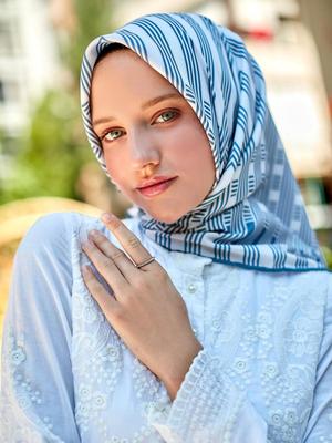 N9NE Mavi Maze Blue Twill Eşarp