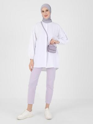 Refka Beyaz Balon Kollu Boydan Düğmeli Poplin Tunik