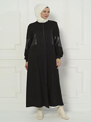 Beyza Siyah Baskı Detaylı Kışlık Ferace