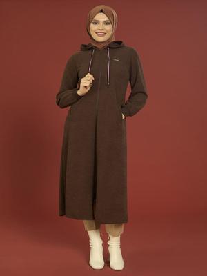Beyza Kahve Fermuarlı Kışlık Ferace