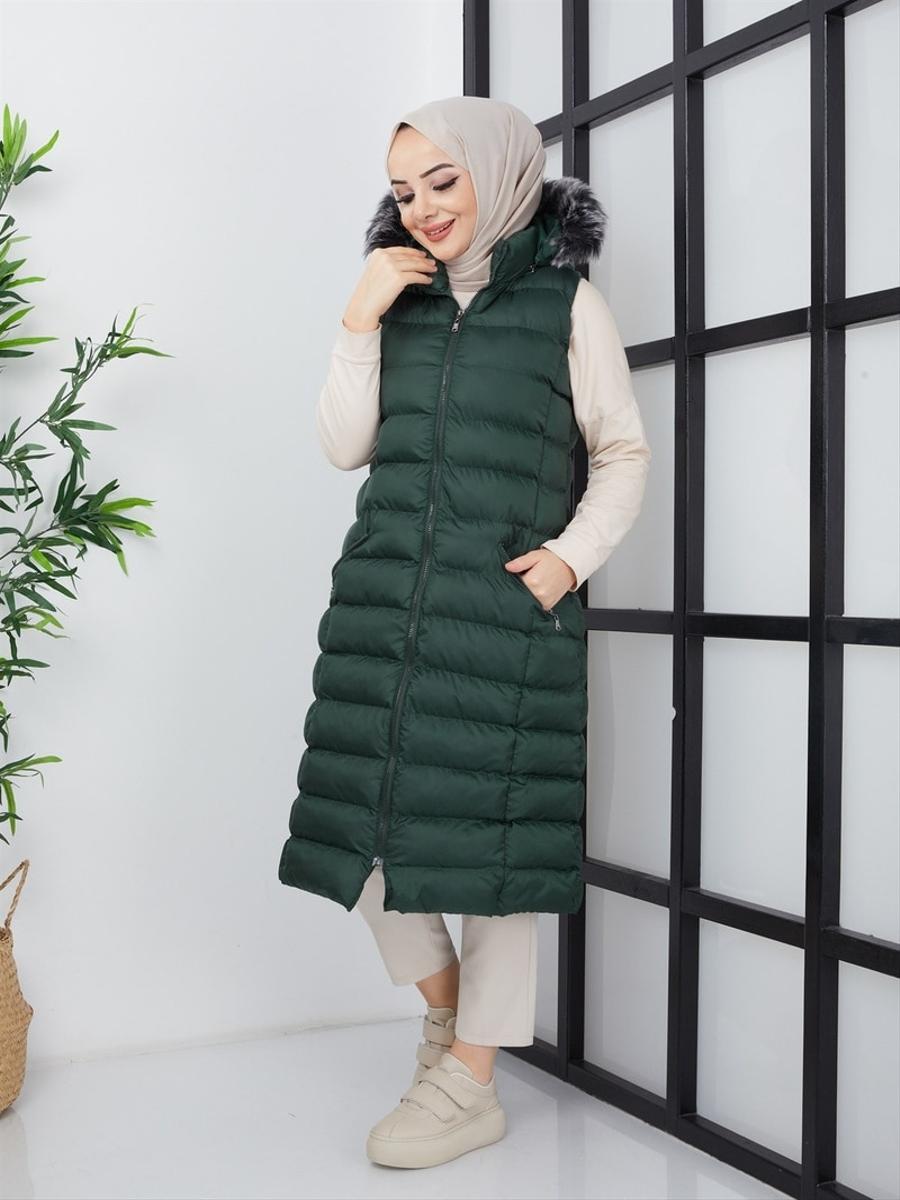 Hafsa Mina Haki Uzun Dolumlu Şişme Yelek