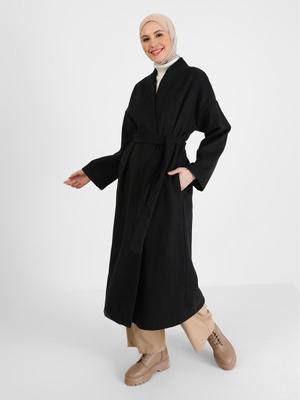 Refka Siyah Kaşe Kuşak Detaylı Kaban