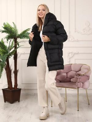 Muzzem Siyah Tünelli Çift Cepli Şişme Mont