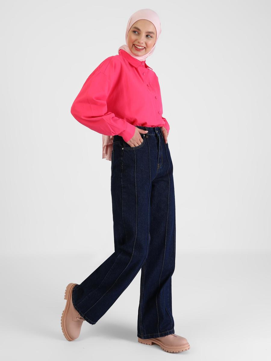 Benin Lacivert Nervür Detaylı Denim Pantolon