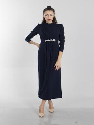 Ardanewline Lacivert Taş Ve Drape Detaylı Abiye Elbise