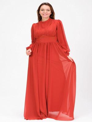 Mylace Kiremit Beli Taş İşlemeli Pile Detaylı Şifon Abiye Elbise