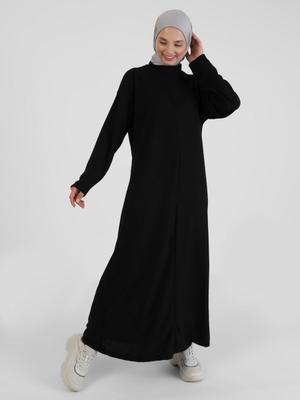Refka Siyah Yumoş Kumaşlı Hakim Yaka Elbise