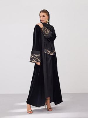 AL SHEIKHA Siyah Velvet Hessa Abaya Set