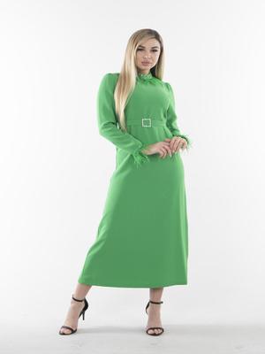 Ardanewline Yeşil Uzun Kol Tüy Detaylı Elbise