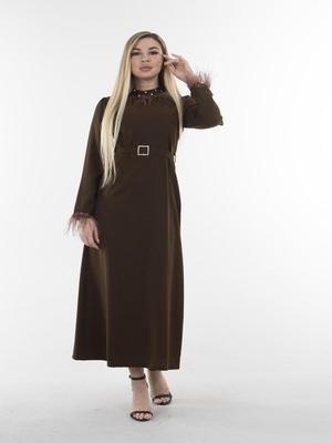 Ardanewline Kahve Uzun Kol Tüy Detaylı Elbise