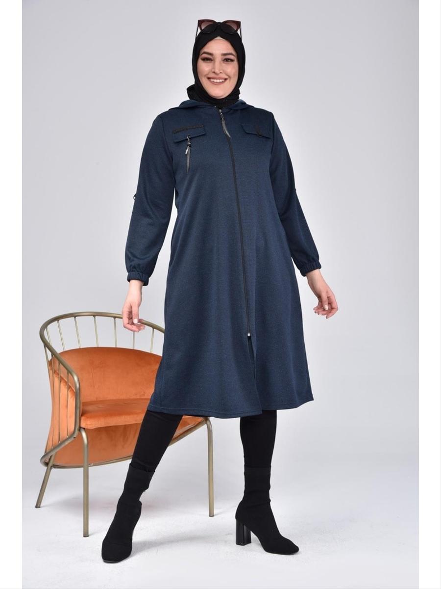 Ferace Lacivert Büyük Beden Sim Şeritli Kışlık Kap Kaban