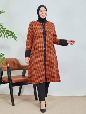 ZENANE Oranj Kazayağı Desenli Boydan Düğmeli Kap