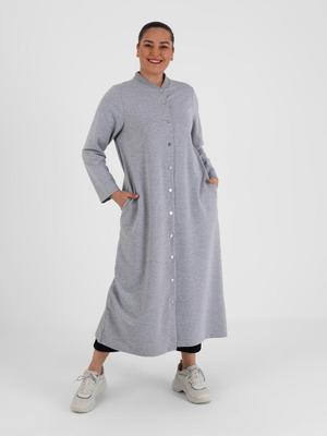 Alia Büyük Beden Boydan Çıtçıt Düğmeli Kap Gri Melanj