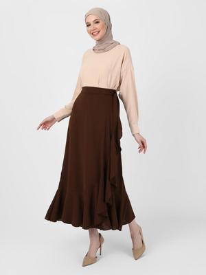 Refka Koyu Kahverengi Volan Detaylı Aerobin Etek